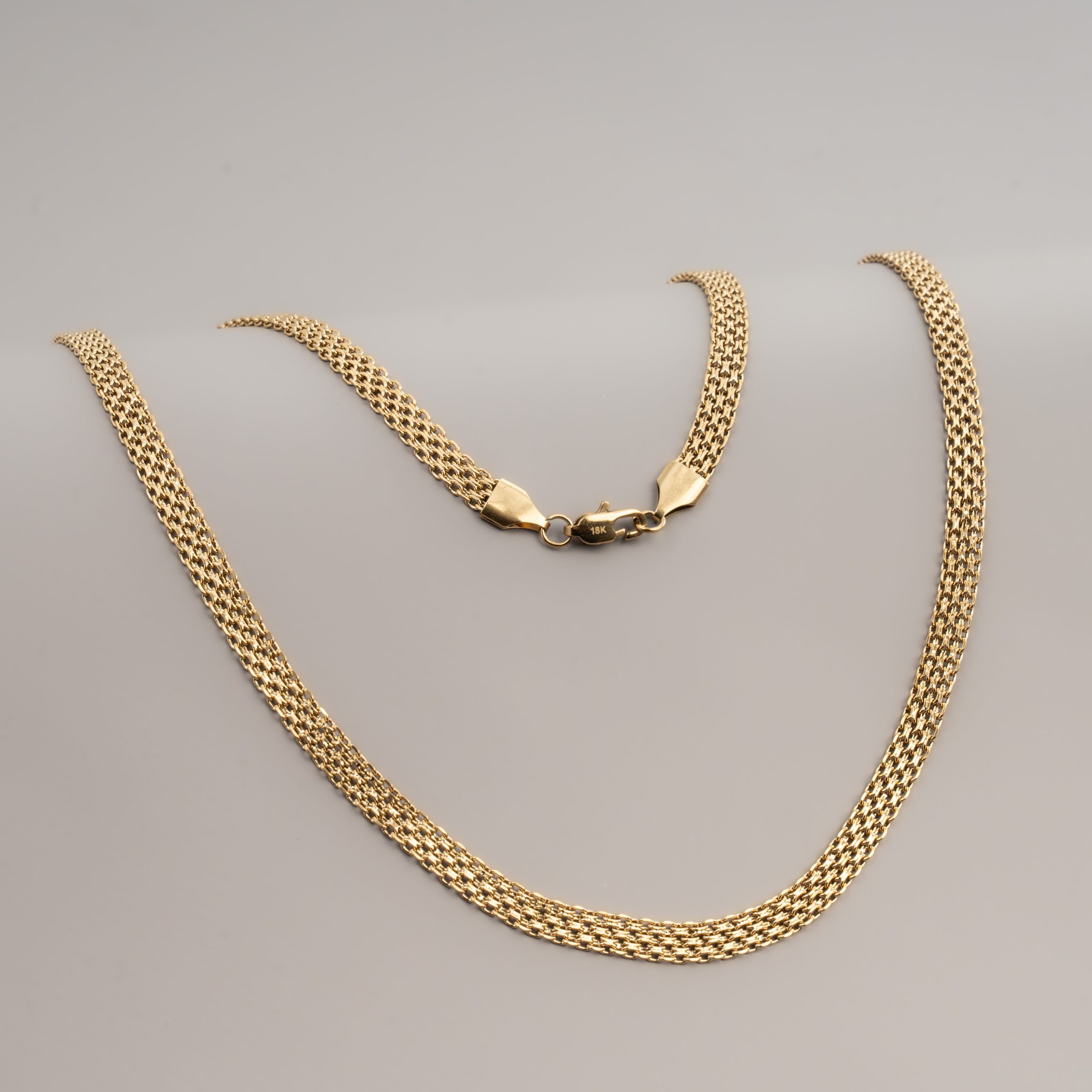Descubre el equilibrio perfecto entrelujo, estilo y durabilidad con nuestra cadena laminada enOro Italiano de 18 quilates. Su diseño tipochina de 65 cm y 5 mm de grosor aporta una elegancia atemporal que eleva cualquier atuendo, ya sea para el día a día o una ocasión especial.