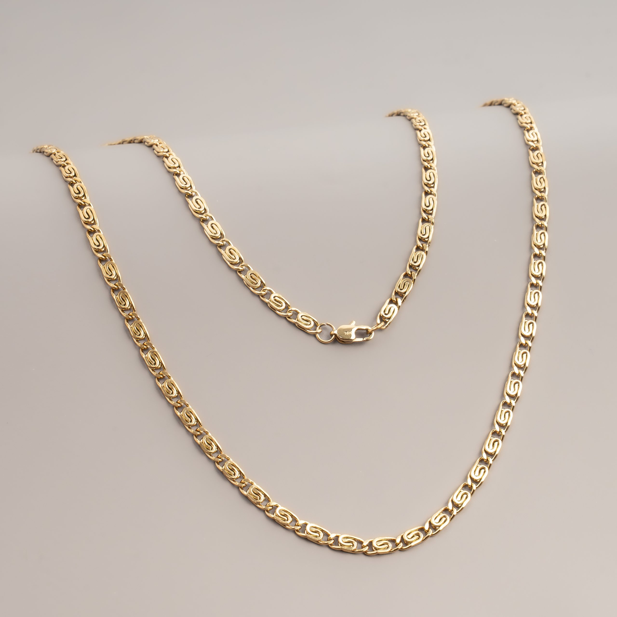 Descubre el equilibrio perfecto entre lujo, estilo y durabilidad con nuestra cadena laminada en Oro Italiano de 18 quilates. Su diseño tipo clip de 65 cm y 4 mm de grosor aporta una elegancia atemporal que eleva cualquier atuendo, ya sea para el día a día o una ocasión especial.
