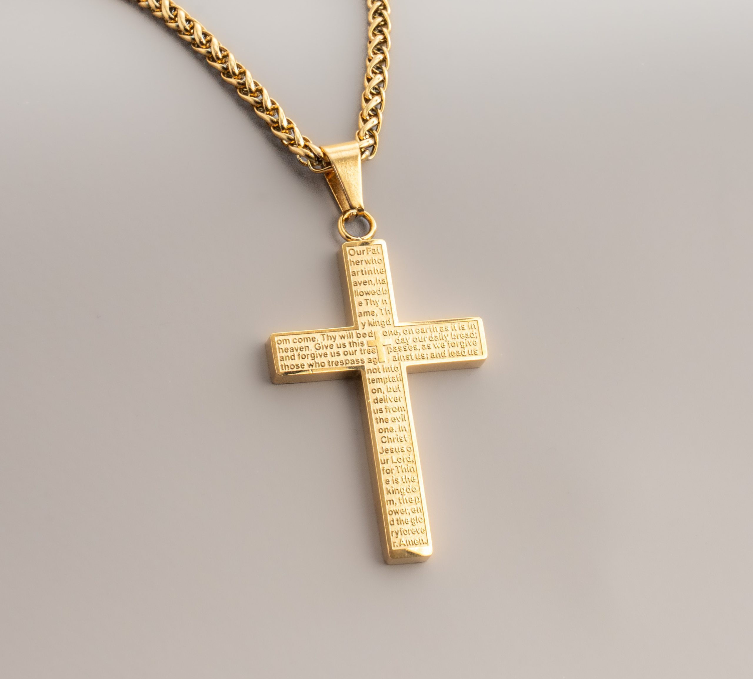 Dije de Oro Laminado Italiano 18K – Diseño cruz letras